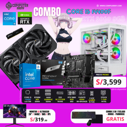 COMBO PC GAMER i5 14400F + RTX 5060 – DDR5 PRO