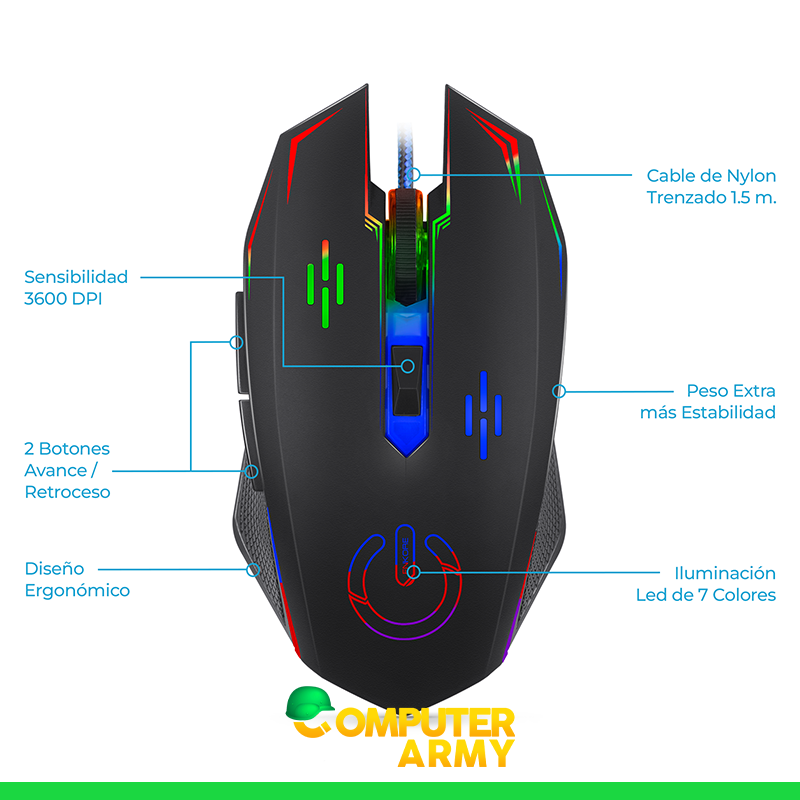 Sensor Óptico Avanzado: Funciona Sobre Cualquier Superficie No Reflectiva.