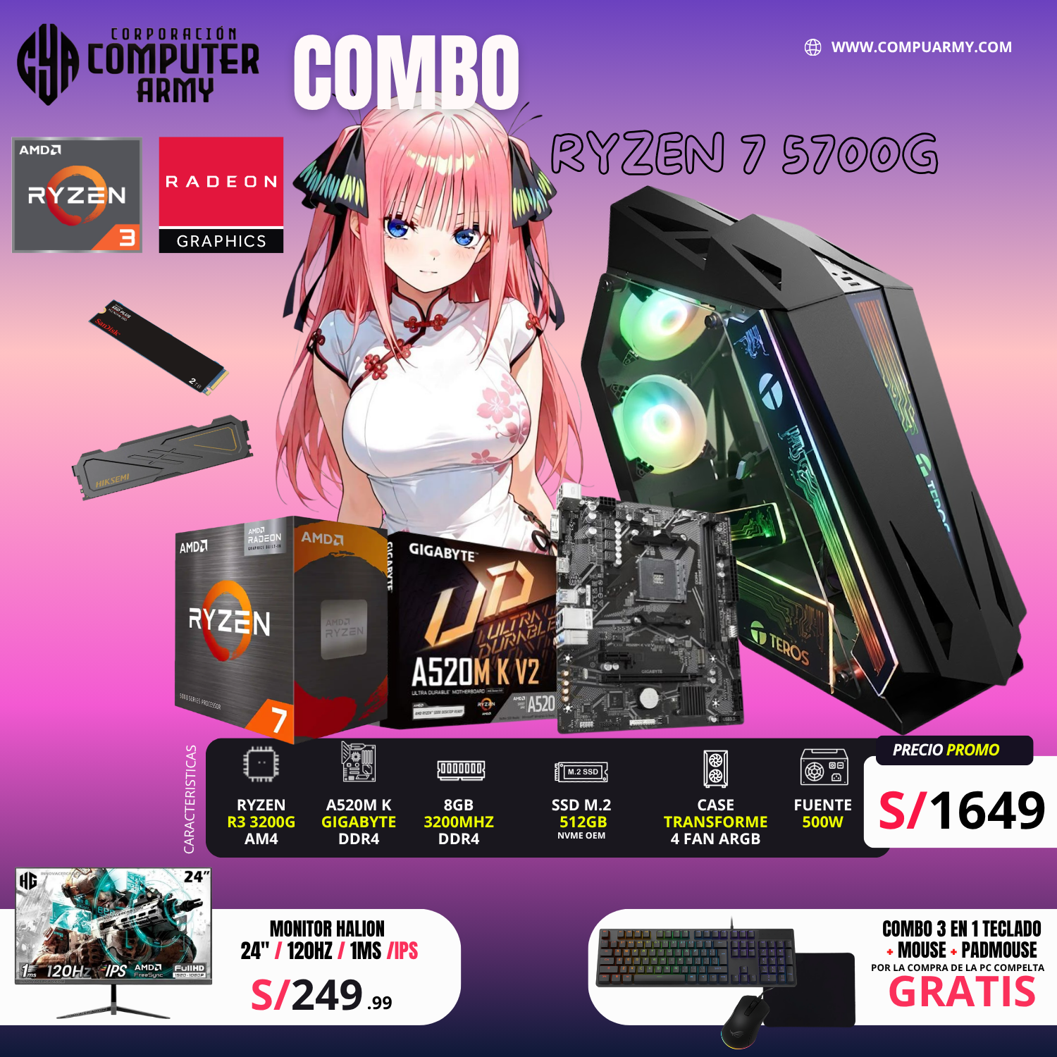 COMBO PC GAMER ELITE RYZEN 7 5700G – MAX PERFORMANCE EDITION
