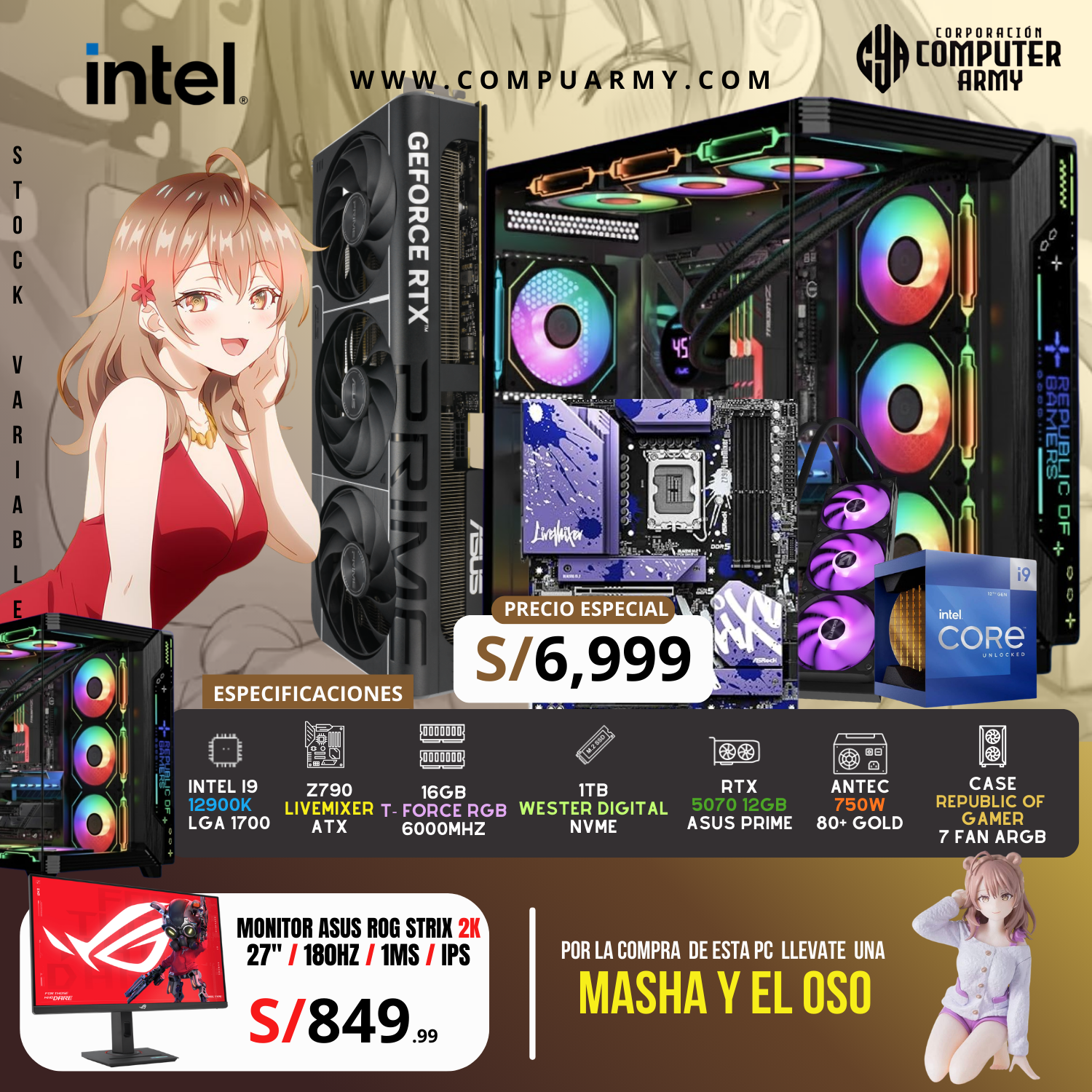 PC WAIFU MASHA – INTEL I9 12900K + RTX 5070 12GB