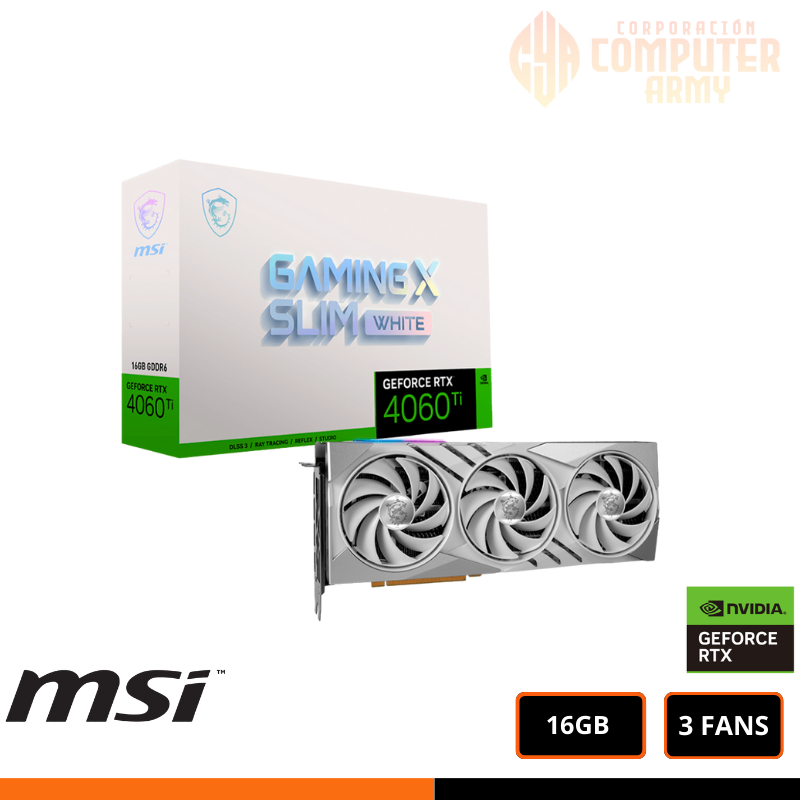 TARJETA GRAFICA MSI RTX 4060TI GAMING X WHITE, 16GB GDDR6, PCI-E 4.0 INCLUYE SOPORTE PARA GPU / PROMO CON PC